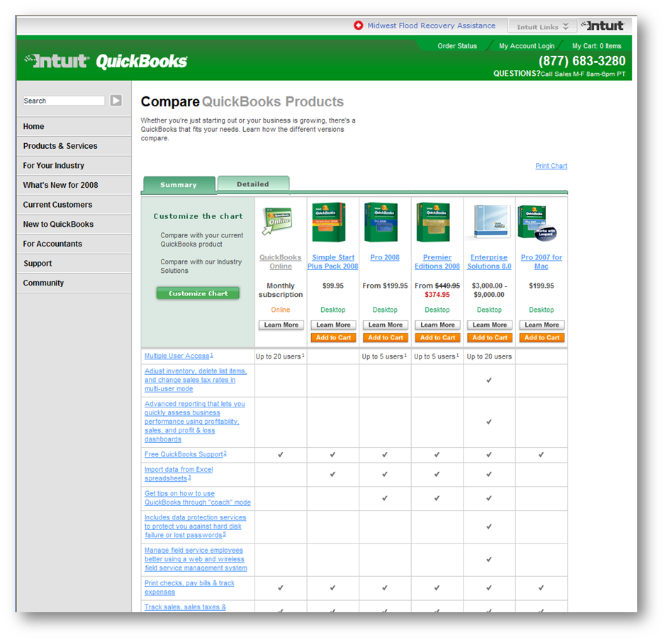 New Quickbooks Product Comparison Page